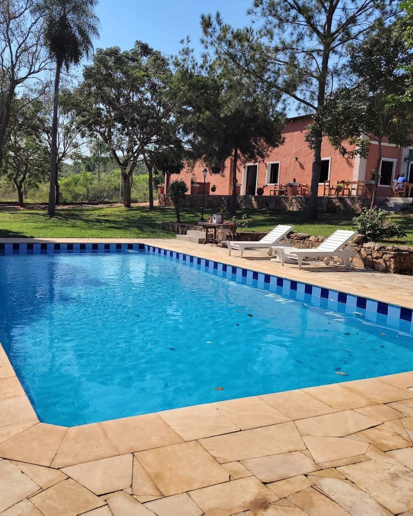- Piscina al aire libre rodeada de áreas verdes.